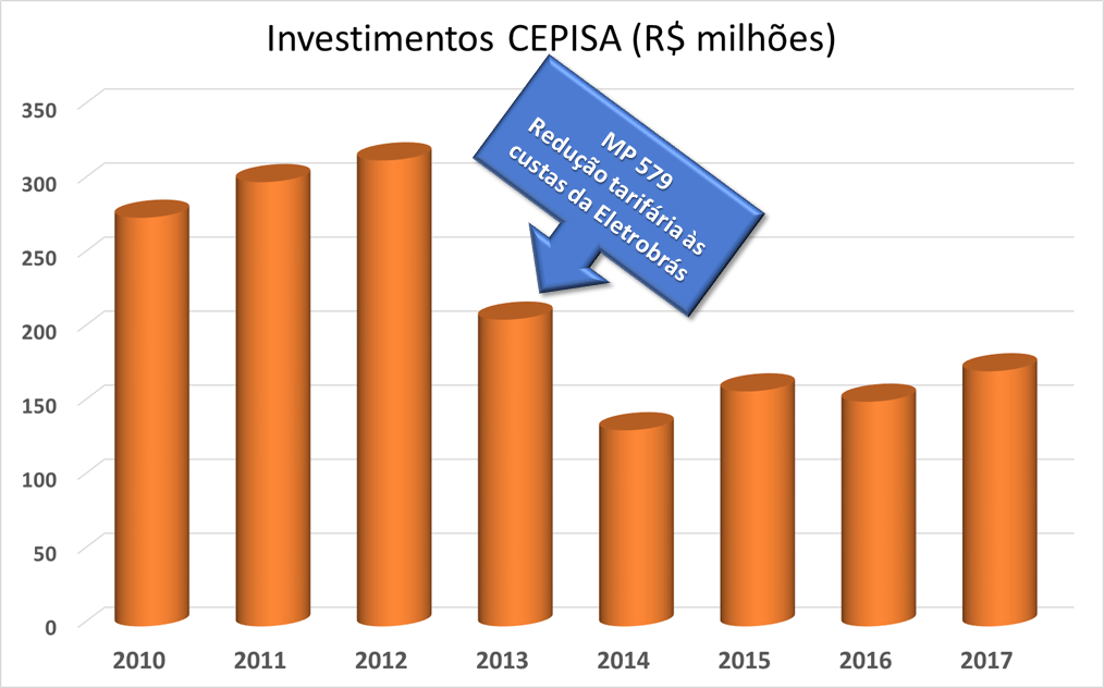 Reparem que o compromisso era privatizar, mas o poder político (não a Eletrobras) descumpriu o prometido. Mesmo assim, justamente por ter lucratividade nas suas outras atividades, a Eletrobras continuou investindo pesadamente na CEPISA. De 2010 até 2017 o total atingiu R$ 2,3 bilhões. Foram “apenas” 29.000 km de linhas e 11 subestações acrescidas no período.